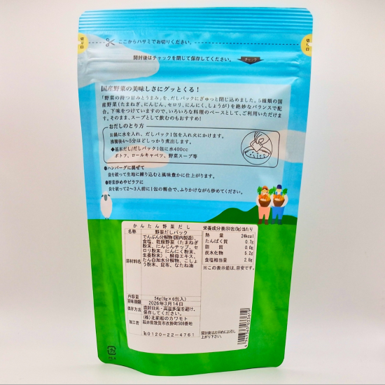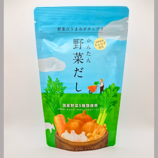 5種類の国産野菜の「うまみ」がたっぷりと詰まっただしパックです。